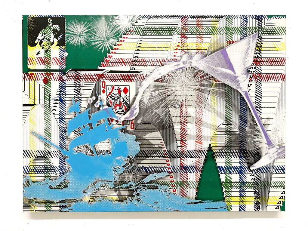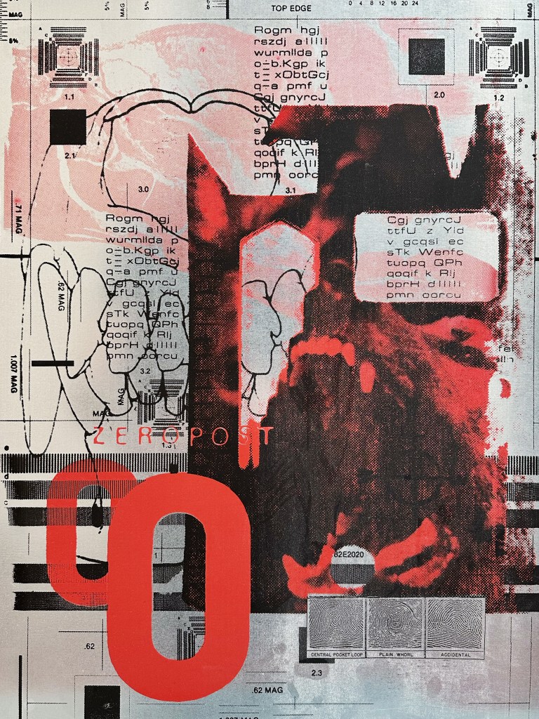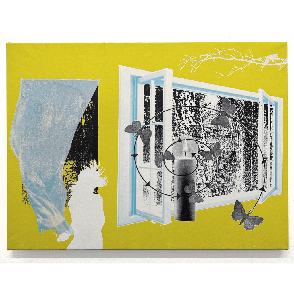 Untitled, 2025, Acrylic and Silkscreen on Canvas over Panel, 24 in by 18 in