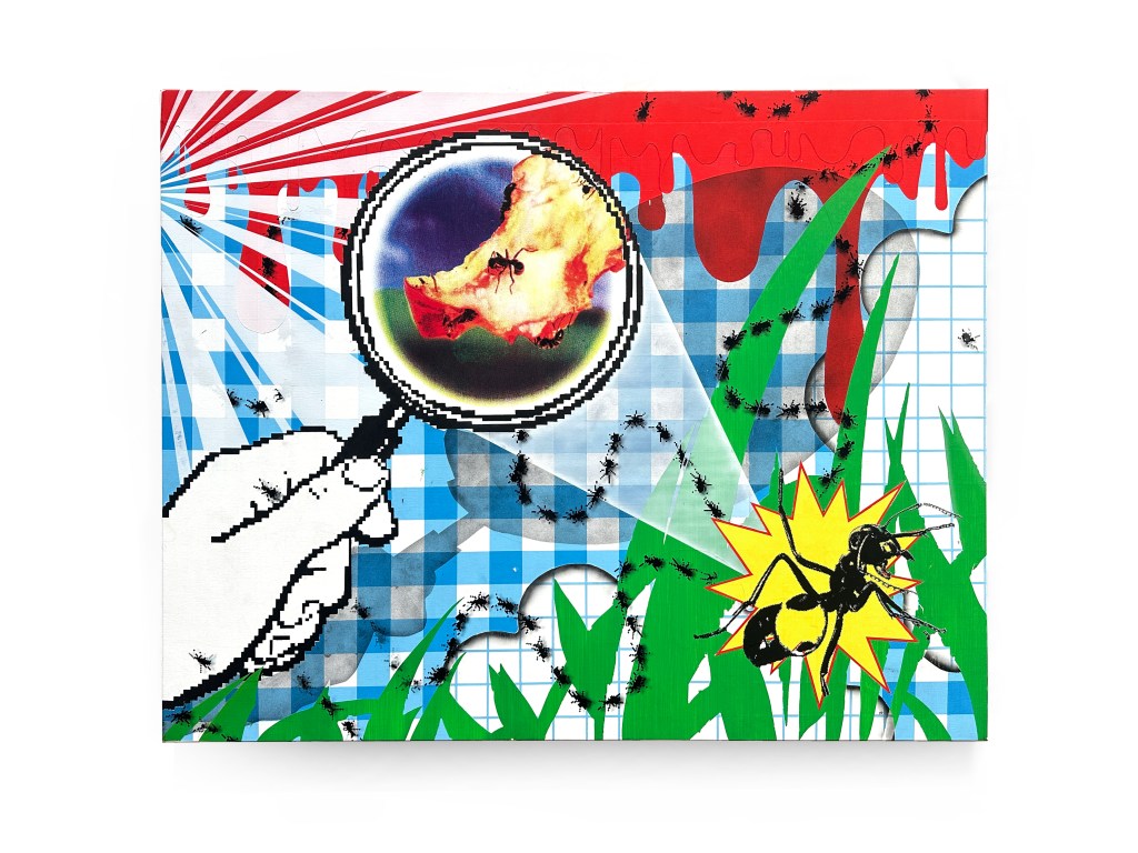 Its What’s Inside That Counts, Acrylic and Silkscreen on Canvas, 30 in by 40 in